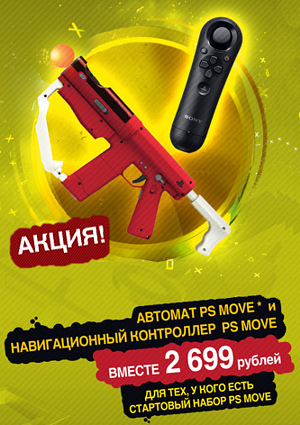 В рамках данной акции, при одновременной покупке PS Move Sharp Shooter (рукоятка для PS Move Controller в виде автомата для стрельбы и навигации) и PS Move Navigation Controller (дополнительный контроллер) вам предоставляется специальная цена 2699 рублей на указанный комплект.