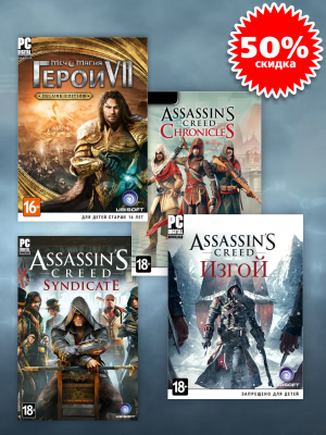 Акция завершенаВыберите свою эпоху, географическое направление, героя и отправляйтесь в захватывающее путешествие по вселенной игры Assassin's Creed! Или же вы предпочитаете исследовать потрясающий фэнтезийный мир Might & Magic? Выбор за вами!