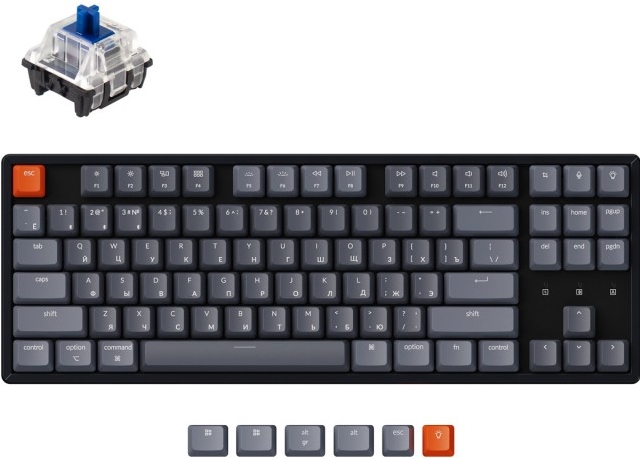 Описание клавиатуры Keychron K8, TKL, беспроводная механическая, алюминиевый корпус, RGB подсветка – Gateron Blue Switch для PC:
