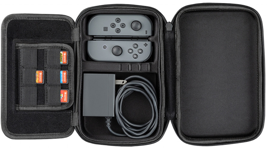 В этом компактном жестком чехле найдется место для вашей приставки Switch, двух джой-конов и зарядного устройства. В него также встроена подставка, которая поддержит вашу Switch, пока вы играете. В чехле есть кармашки для 6 игровых картриджей. Никогда не разряжайтесь, никогда не бросайте игру!