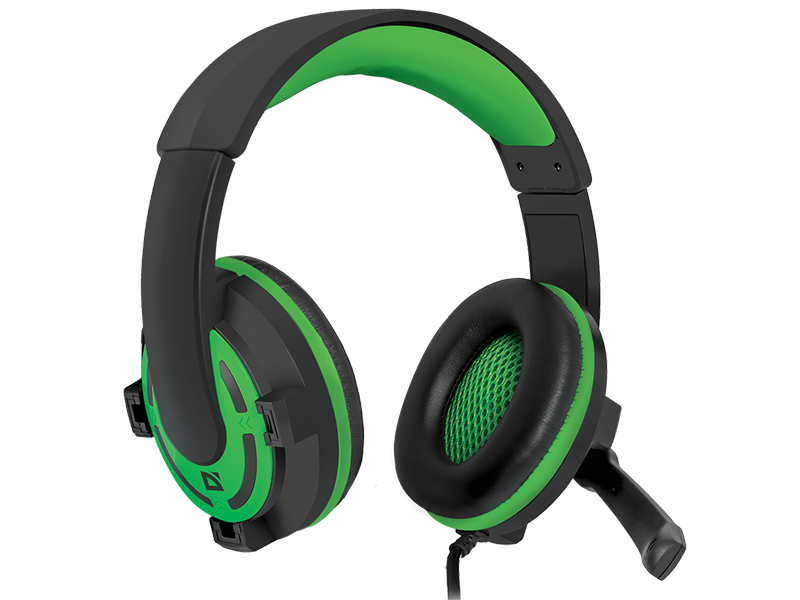 Проводная игровая гарнитура Defender Warhead G-300 в стильном оформлении и зеленом цвете.