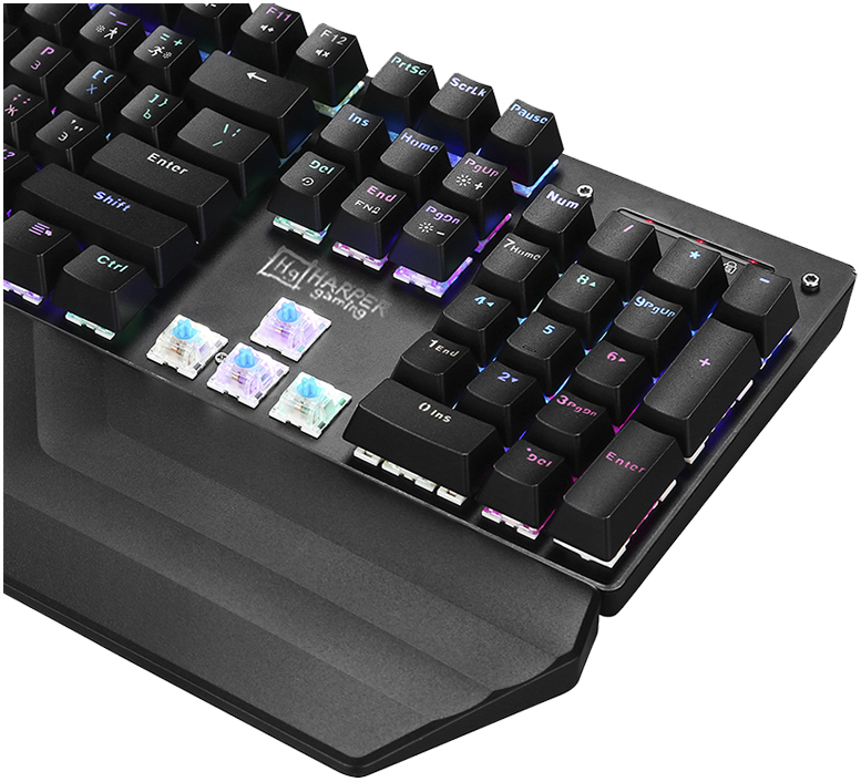 В клавиатуре Harper Gaming Sierra GKB-P102 используются синие переключатели, которые выдерживают до 50 млн циклов нажатий, хорошо защищены от попадания жидкости и пыли, обеспечивают устойчивый линейный ход при нажатии. - Дополнительный функционал