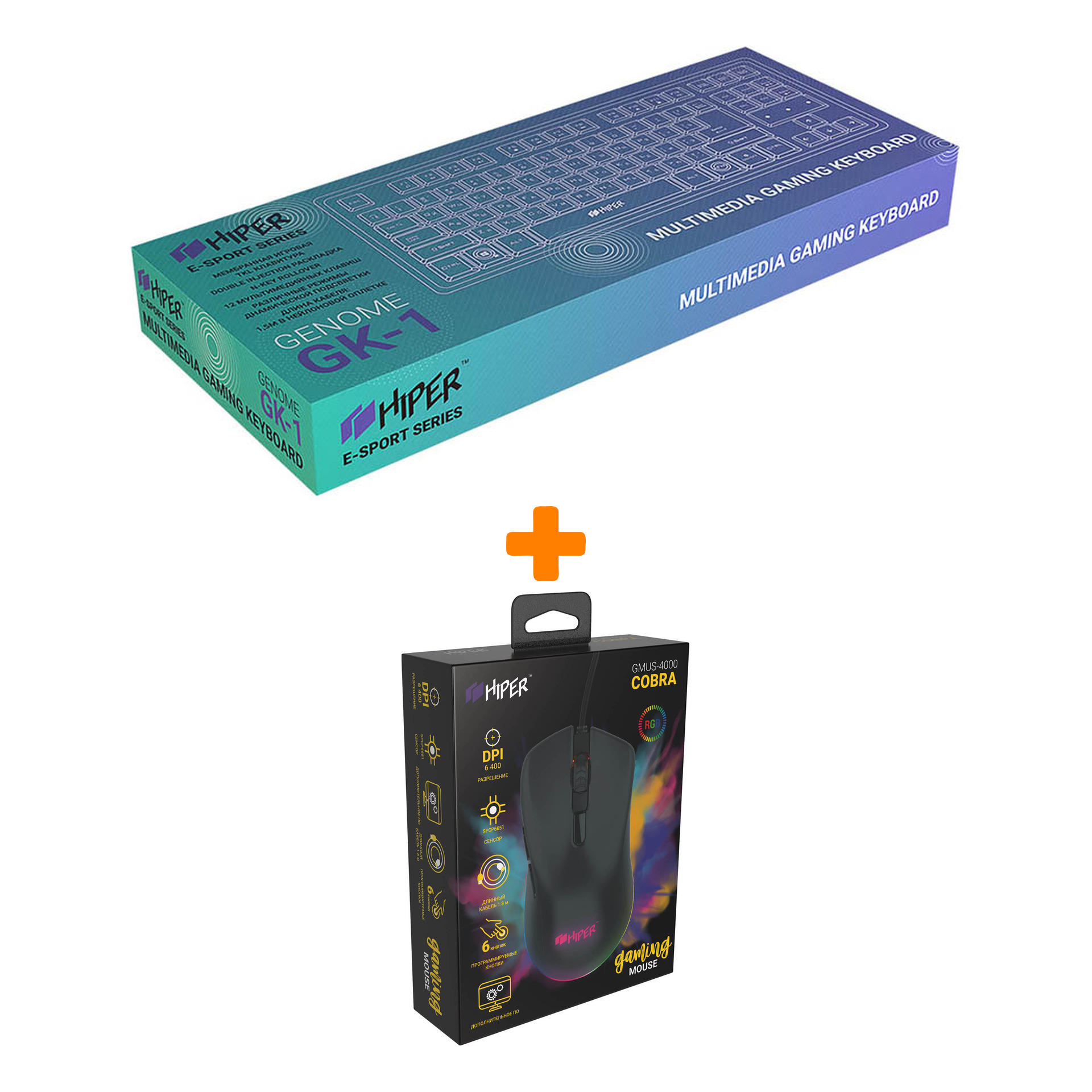 Клавиатура HIPER GENOME GK-1 проводная игровая с подсветкой для PC (чёрный)(4603721480241), Мышь HIPER GMUS-4000 COBRA проводная игровая для PC (чёрный)(7930092030056)
