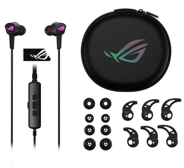 ROG Cetra II Core поставляется с колпачками и ушными креплениями из силиконовой резины трех размеров, а также парой колпачков из вспененного материала. Для их переноски вместе с гарнитурой в комплект поставки входит компактный футляр. - Armoury Crate