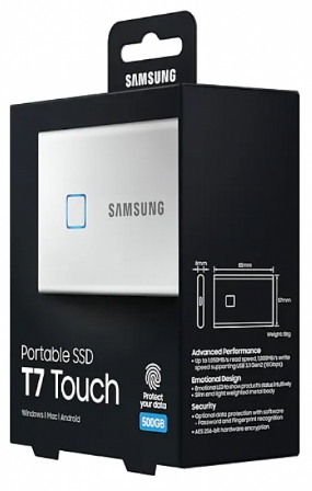 Аббревиатура SSD означает Solid State Drive (Твердотельный накопитель). Это означает, что в нем отсутствуют движущиеся детали. Прочный металлический корпус надежно защищает находящиеся в нем электронные компоненты, обеспечивая невосприимчивость электроники к ударам и падениям с высоты до 2 метров. Наконец, накопитель T7 Touch оснащен 3-летней ограниченной гарантией. - Сенсорная защита доступа