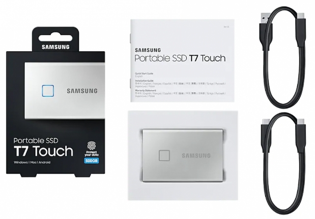 Комплектация твердотельного накопителя Samsung SSD T7 Touch 500GB USB Type-C (серебряный):