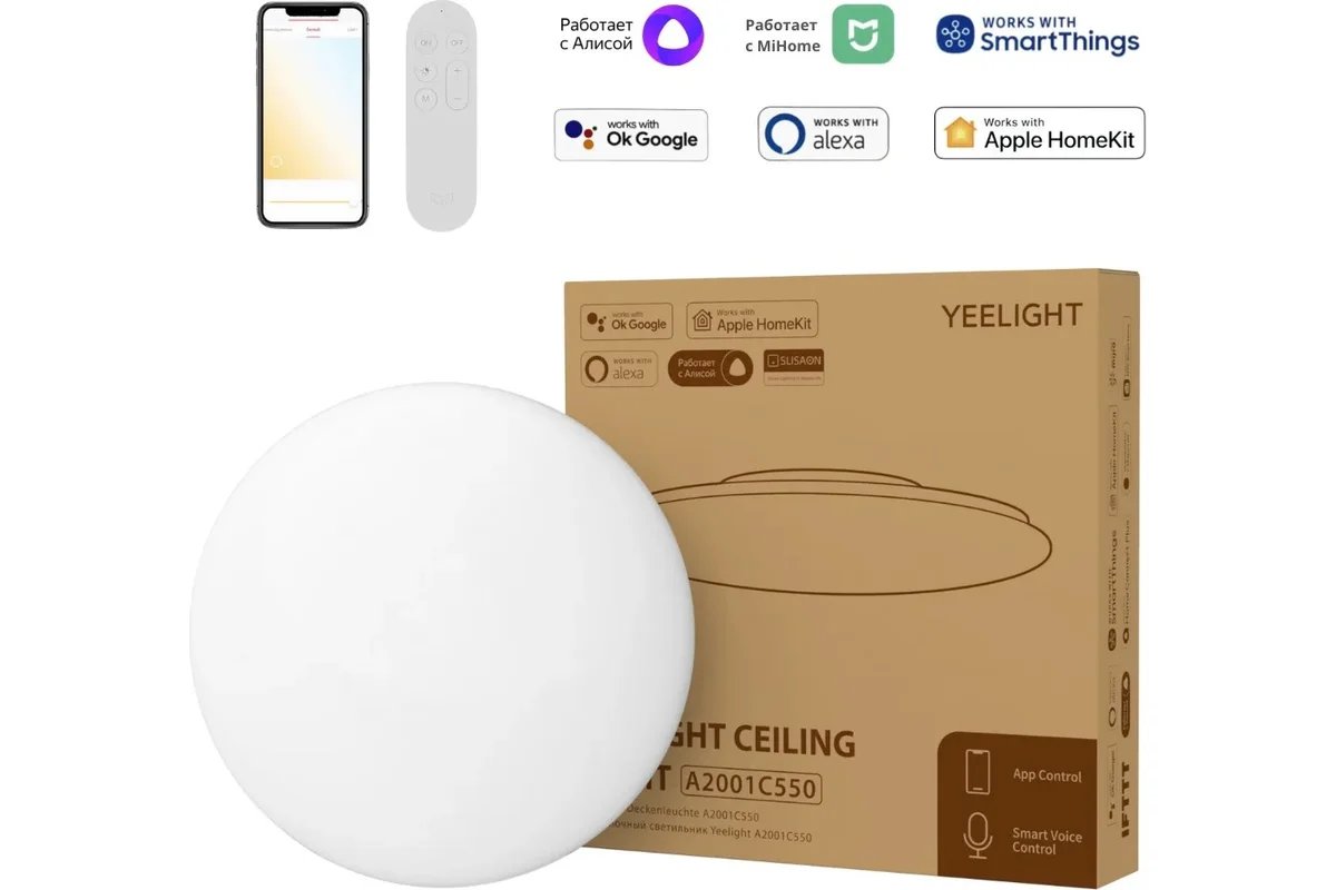 - Тип управления: пульт ДУ, со смартфона, голосовой