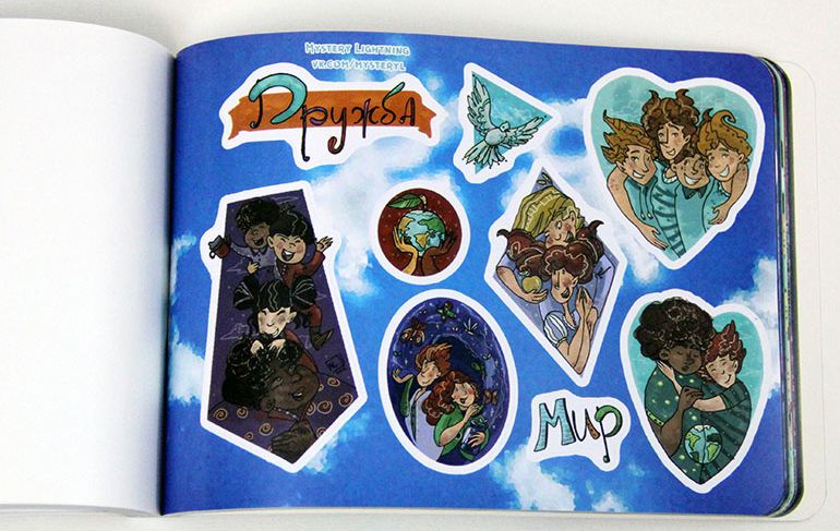 Над стикербуком работало 58 человек на протяжении 8 месяцев. Эта невероятная коллаборация дает вам шанс погрузиться в творческий полет на тему «Мира во всем мире».