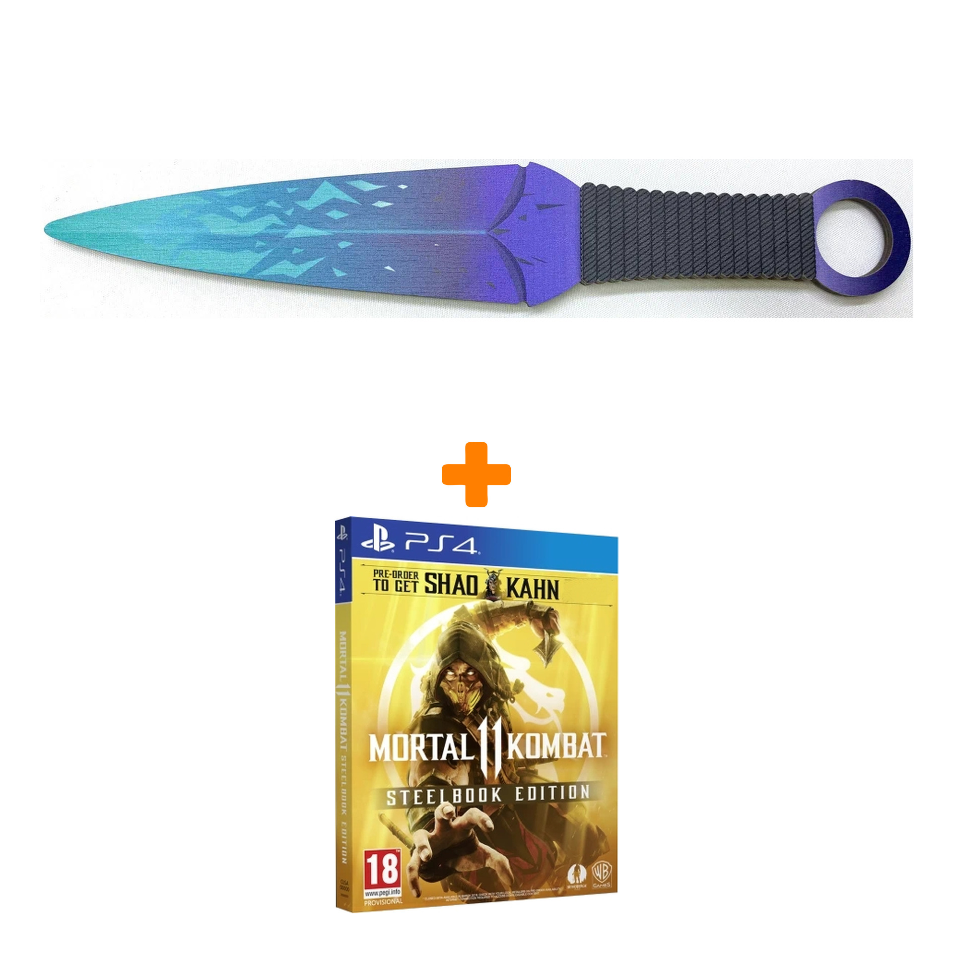 Набор Mortal Kombat 11. Steelbook Edition [PS4, русские субтитры] + Оружие игровое нож Кунай 2 Холодное пламя деревянный