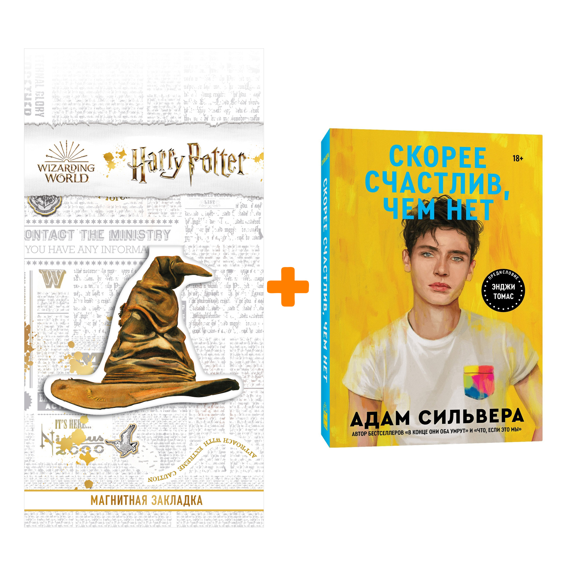 Набор Скорее счастлив, чем нет + Закладка Harry Potter Распределяющая шляпа магнитная