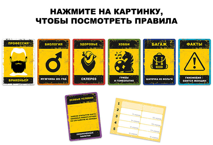 В ходе нескольких раундов игроки решают, кого не берут в бункер. Прошедшие все круги голосования и попавшие в бункер – выживут, чтобы затем возродить цивилизацию. Игроки получают несколько карт характеристик: пол и возраст, профессия, здоровье, хобби и др. Постепенно вы раскрываете свои карты, знакомитесь друг с другом и принимаете решения, кто и насколько будет полезен для выживания и восстановления жизни после выхода из бункера.
