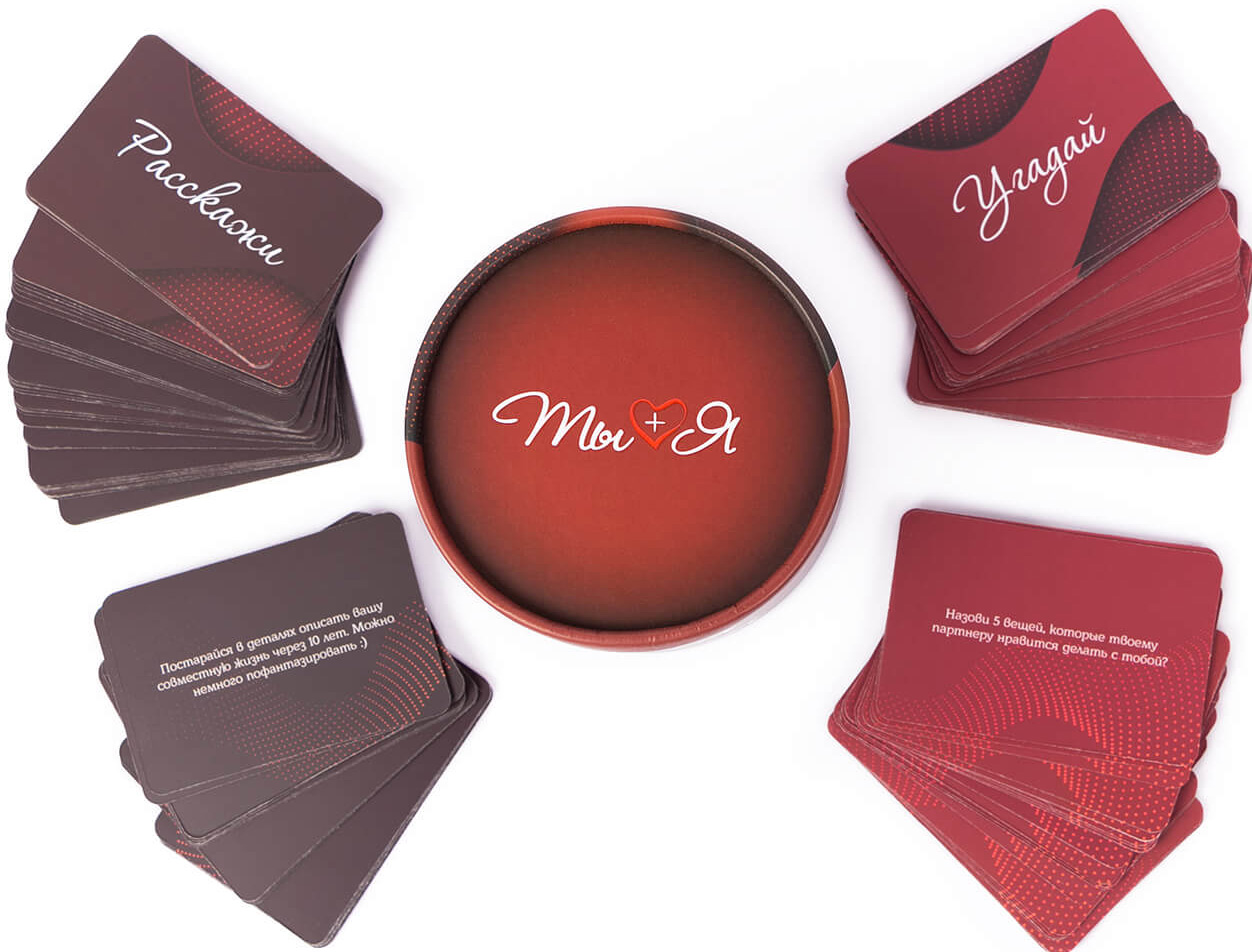 «Ты + Я» – игра, которая не только сможет развлечь вас, но и станет настоящим семейным психологом для ваших отношений. Отвечая на небанальные, иногда неожиданные вопросы, вы будете узнавать что-то новое о своем партнере и о самом себе. Игра помогает раскрепостить отношения, найти новые темы для обсуждения, подтолкнуть к интересному разговору.