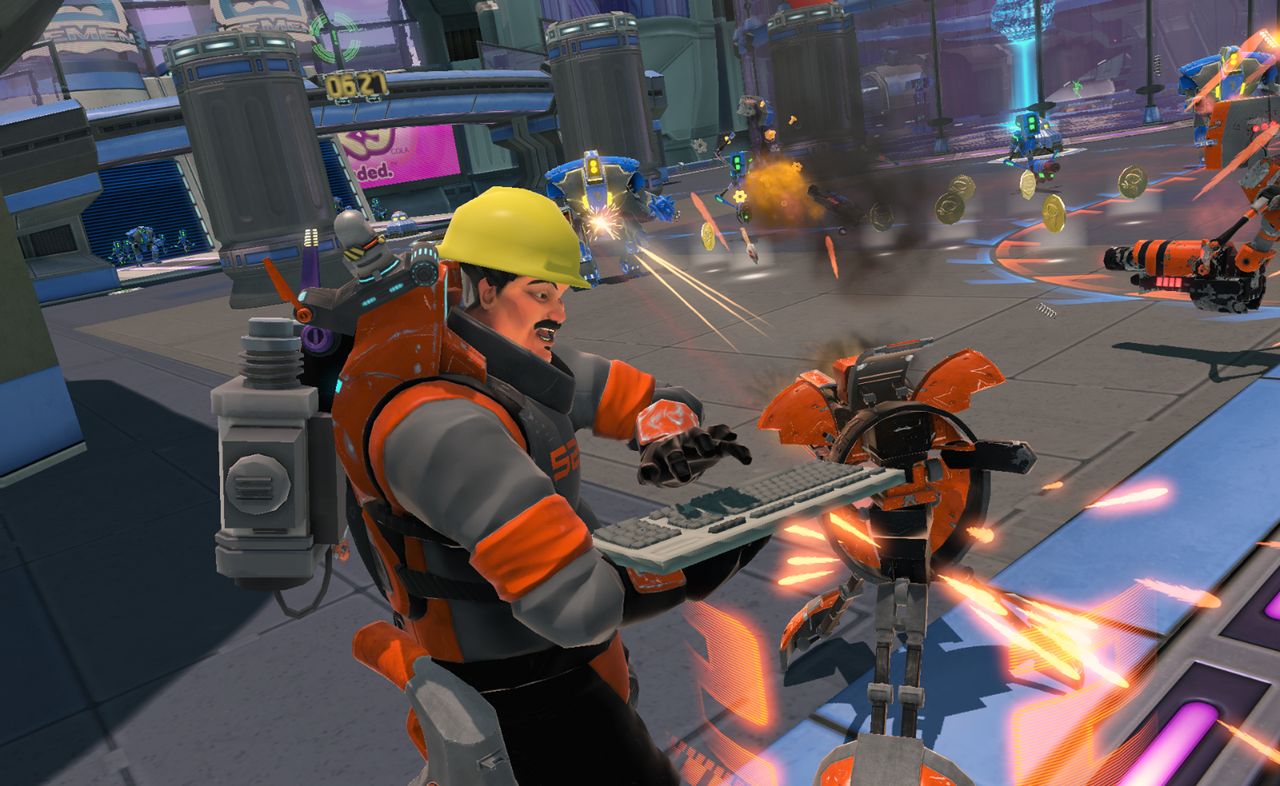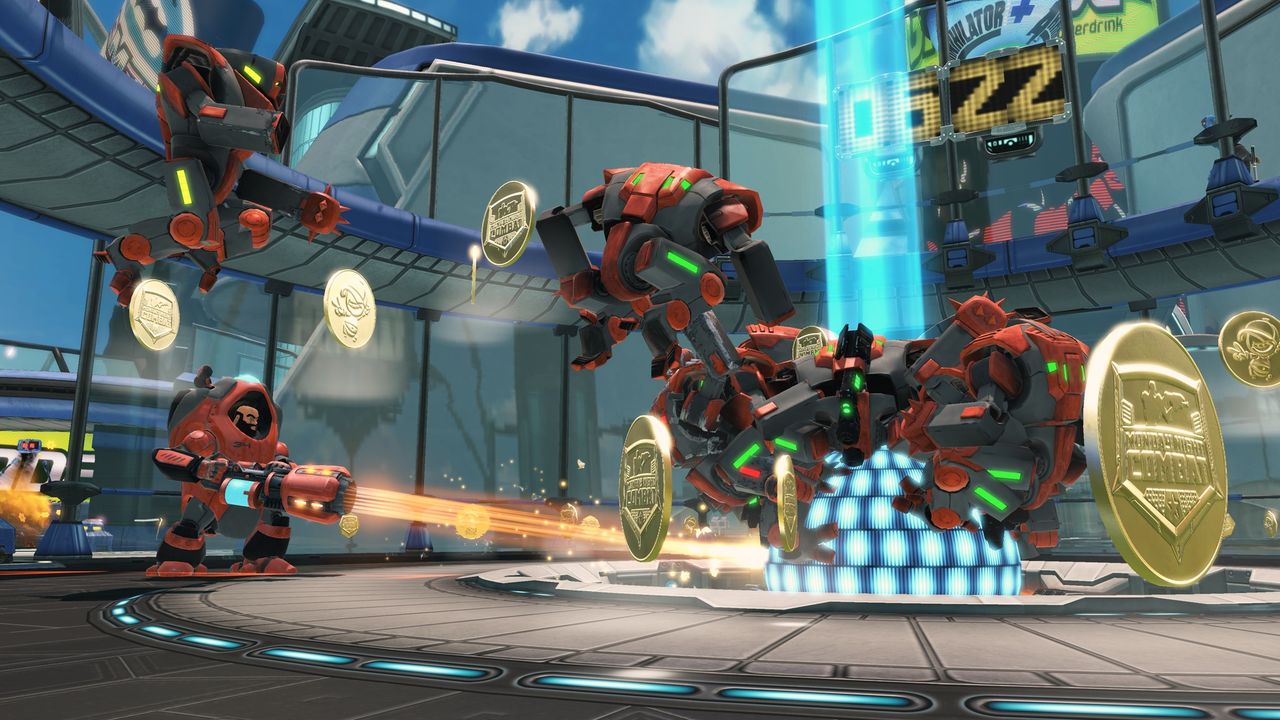- Режим «Crossfire» бросает команды из игроков на битвы друг против друга. Каждая команда поддерживается нескончаемым потоком роботов; уничтожение роботов противника, модернизация вашего персонажа и оборона своей базы приведут вашу команду к успеху!