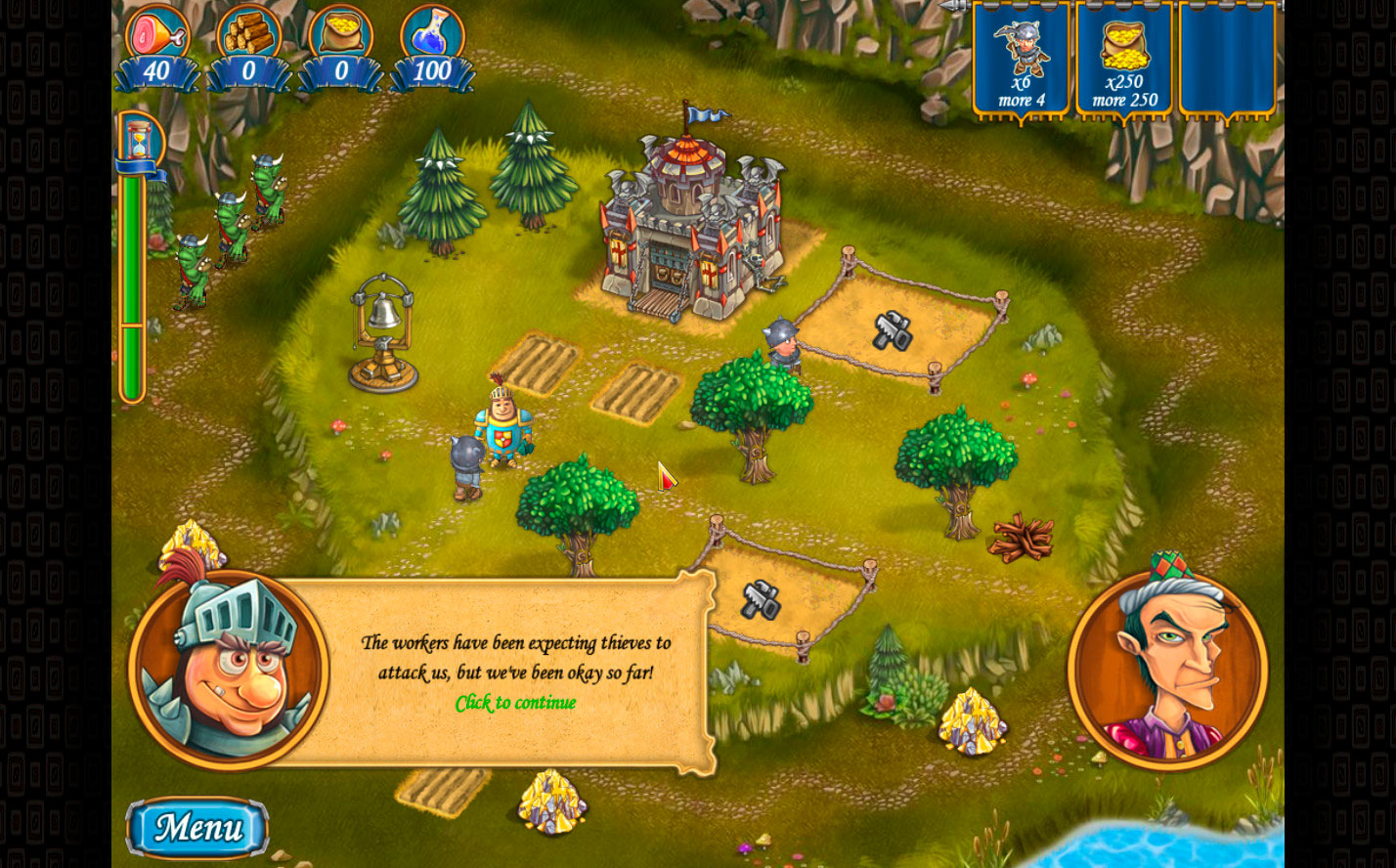 Прежде всего заручитесь поддержкой вассалов; их верность, возможно, не раз спасет вам жизнь. Постройте им комфортное жилье, позаботьтесь о пропитании, и горячая преданность подданных вам обеспечена. Руководите действиями строителей с помощью мышки. Проявите заботу о людях: только доблестный рыцарь без труда прогонит разбойников, справится с хитрыми гномами и с помощью магии в одно мгновение решит вопрос продовольствия. Благодарные жители вашего замка обязательно отплатят той же монетой и предупредят о грозящей опасности...