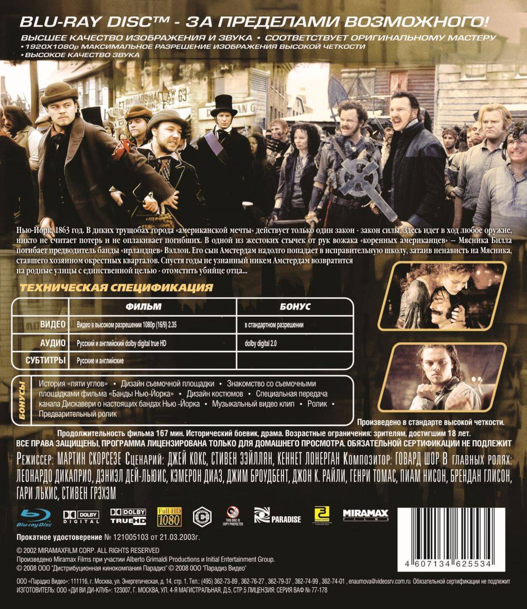 Нью-Йорк, 1846 год. В диких трущобах города американской мечты действует только один закон – закон силы. Здесь идет в ход любое оружие, никто не считает потерь и не оплакивает погибших. В одной из жестоких стычек от рук вожака коренных...