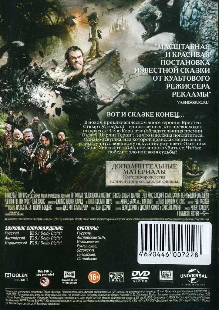 Дилогия «Белоснежка и охотник» – это визуально потрясающее зрелище с эпическими сражениями, глубокими персонажами и атмосферой тёмного волшебства. Сборник понравится тем, кто ищет не детскую сказку, а серьёзное фэнтези с сильными героями, моральными выборами и битвой за будущее.