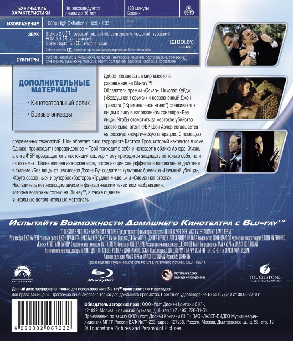 Оставить отзывЧтобы раскрыть подробности запланированного преступниками крупного теракта, агент ФБР Шон Арчер соглашается на сложную хирургическую операцию. Он берёт себе новое лицо, лицо террориста Кастора Троя, который находится в коме.