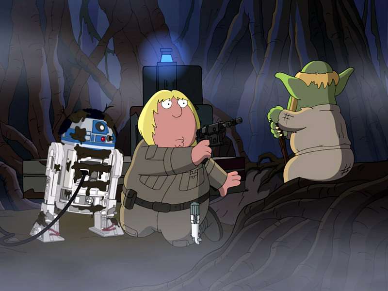 Однажды, Гриффины смотрели по телевизору передачу Аарона Соркина, как вдруг внезапно отрубили электричество. Но неунывающее семейство, вспомнило как, в прошлый раз в подобной ситуации, Питер рассказывал им историю Звездных войн и с нетерпением стало требовать продолжения.