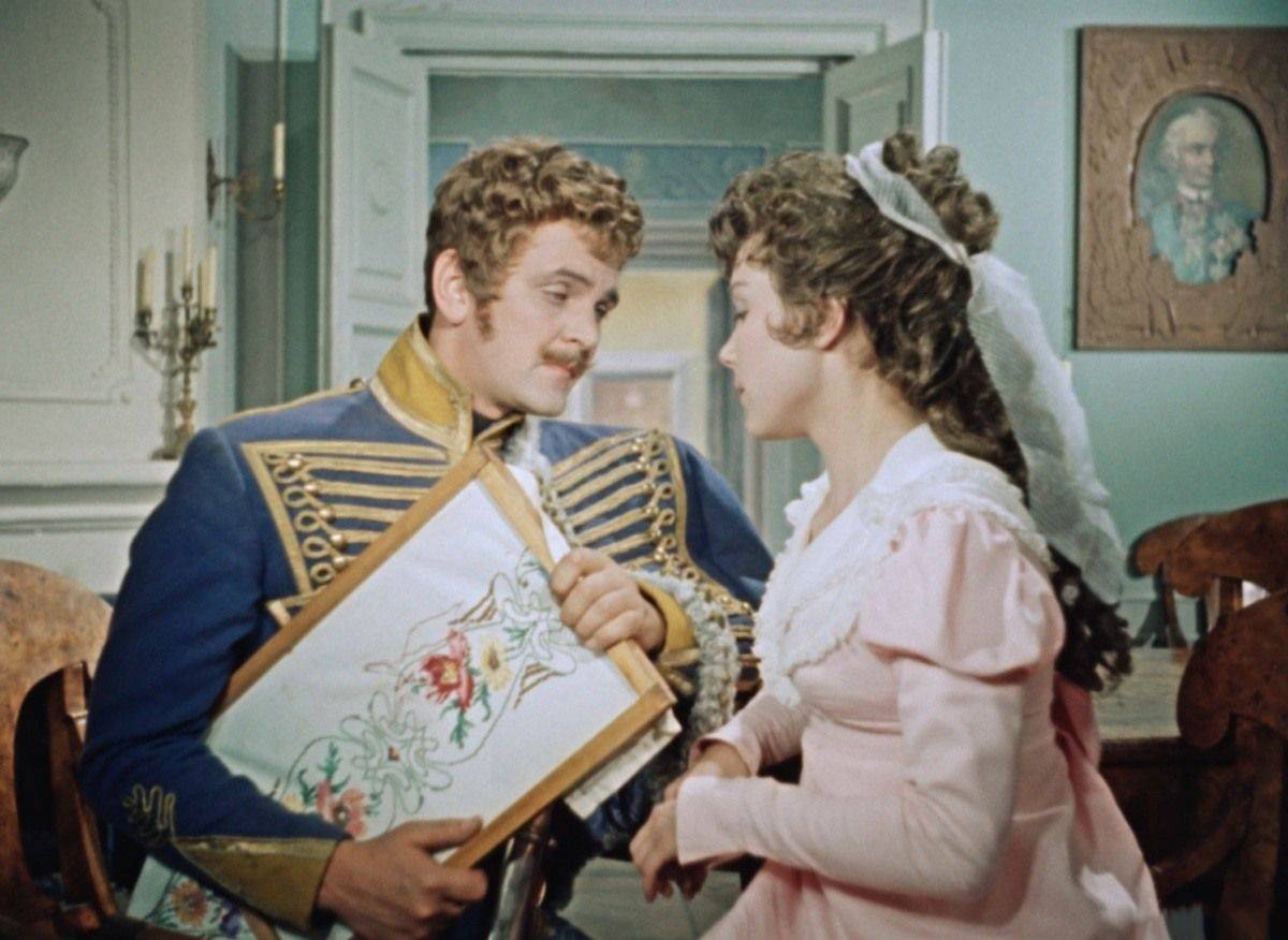Фильм «Гусарская баллада» – история девицы-корнета, желающей наравне с мужчинами защищать отечество. Фильм снят Эльдаром Рязановым по героической комедии Александра Гладкова «Давным-давно». В фильме взаимодействуют: знакомый сюжет, приключения, переодевания, интриги и замечательные жанровые модели романса, баллады, гусарской песни – музыка Т. Хренникова.