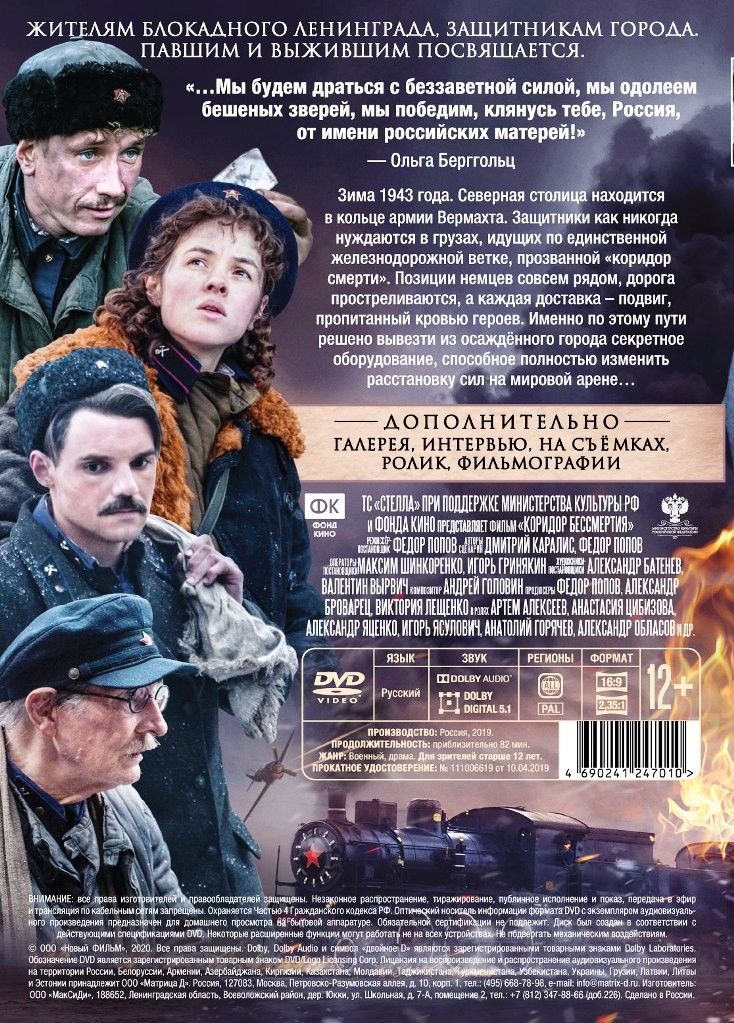 Сборник «Коридор бессмертия» и «Ладога» – две драматические истории о блокаде Ленинграда, где каждый день становился испытанием на выживание, а каждый маршрут – дорогой между жизнью и смертью. Это фильмы о людях, которые в нечеловеческих условиях сохраняли человечность и делали всё возможное, чтобы город продолжал дышать.
