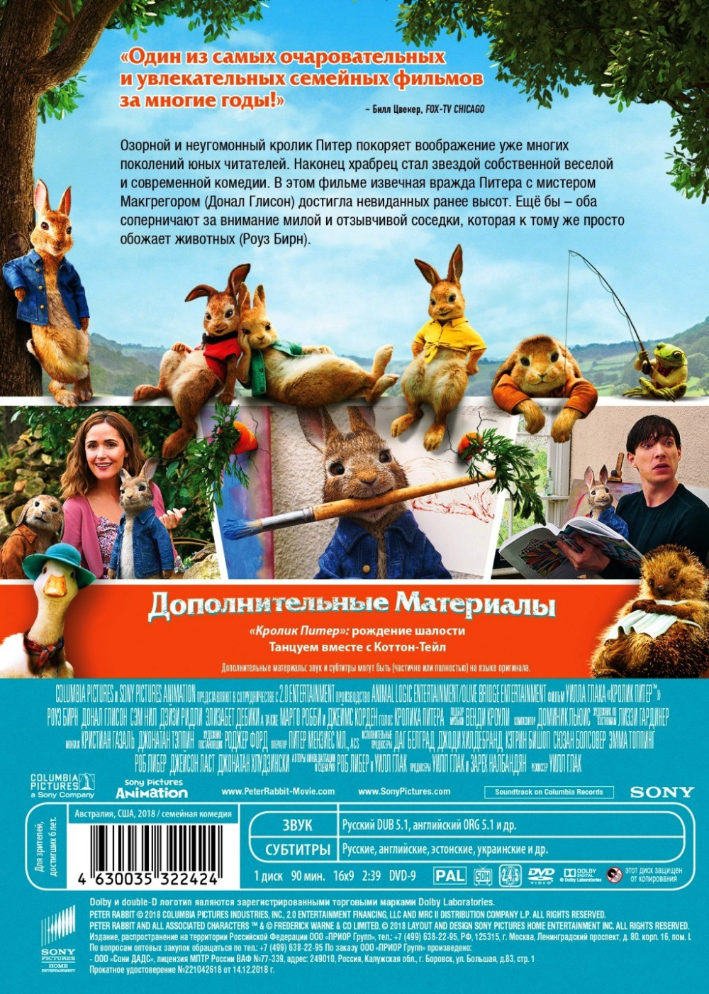 Оставить отзывФильм Кролик Питер – экранизация знаменитой книги детской писательницы Беатрис Поттер о приключениях маленького и непоседливого кролика по имени Питер, который хочет пробраться в огород к грозному фермеру и вдоволь полакомиться там фруктами и овощами.