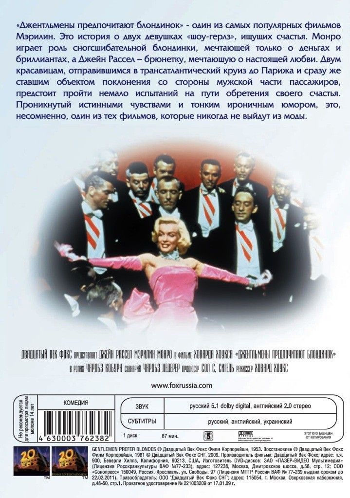 Описание сборника фильмов Коллекция фильмов с Мерлин Монро: Джентльмены предпочитают блондинок / Все ...