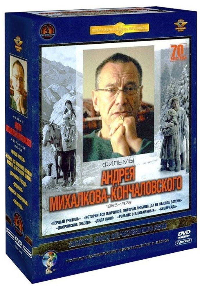 Сборник «Фильмы от режиссера Андрея Михалкова-Кончаловского» включает следующие фильмы: «Дворянское гнездо», «Дядя Ваня», «Романс о влюбленных», «Сибириада. Фильм 1, 2», «Первый учитель», «История Аси Клячиной, которая любила, да не вышла замуж».