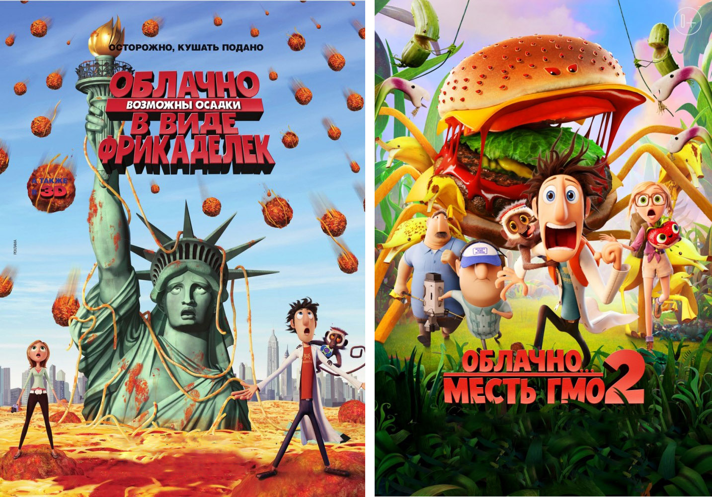 Оставить отзывСразу две части великолепного фильма: Облачно, возможны осадки в виде фрикаделек и Облачно, возможны осадки в виде фрикаделек 2. Месть ГМО
