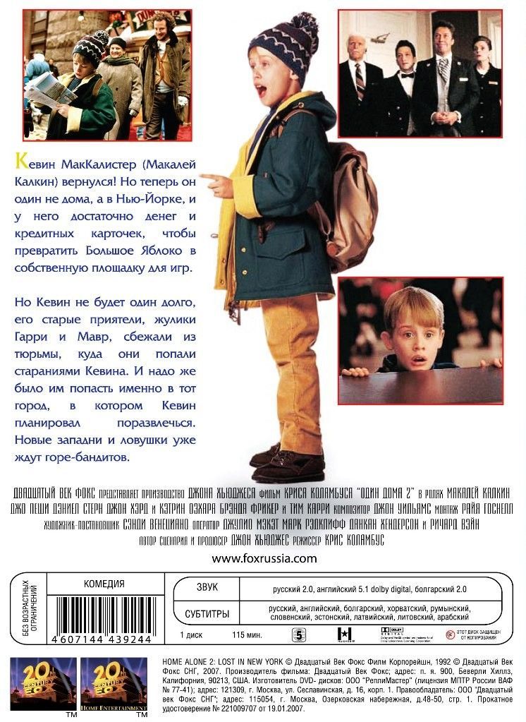 Сборник из двух культовых комедий – «Один дома. Дилогия – 1» – предлагает зрителю два ярких эпизода приключений озорного мальчика Кевина МакКалистера и его юморных противостояний с неуклюжими грабителями.