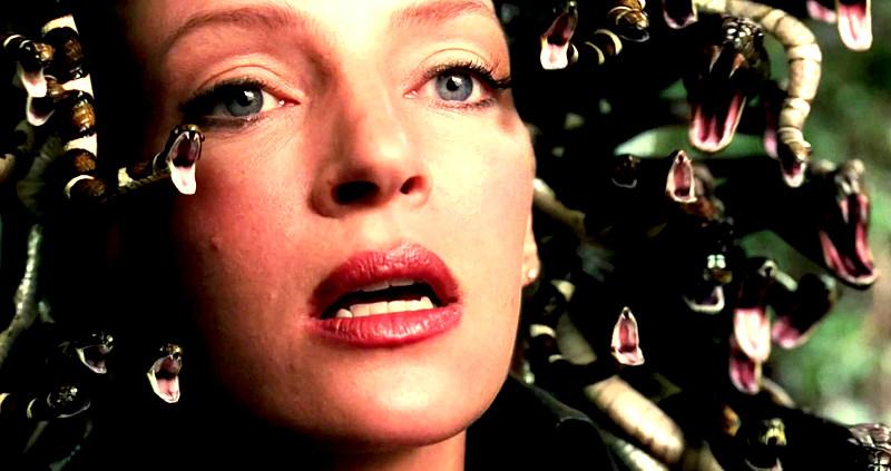 На протяжении всего фильма Перси Джексон и похититель молний нашим героям встречается целый сонм разнообразных мифологических существ, в том числе Медуза Горгона, в исполнении Умы Турман, кентавр сыгранный Пирсом Броснаном, Аид (Стив Куган) и его жена Персефона (Розарио Доусон), ну и всякие прочие фурии с гарпиями «в одном стакане».