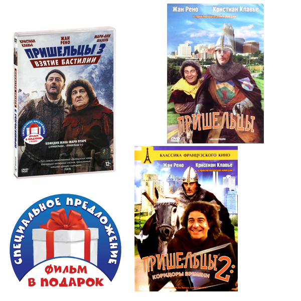 Пришельцы. Трилогия – сборник комедийных фильмов про путешествия чудаковатых персонажей средневековья – Годфруа де Монмирайя и его оруженосца Жакуйя.