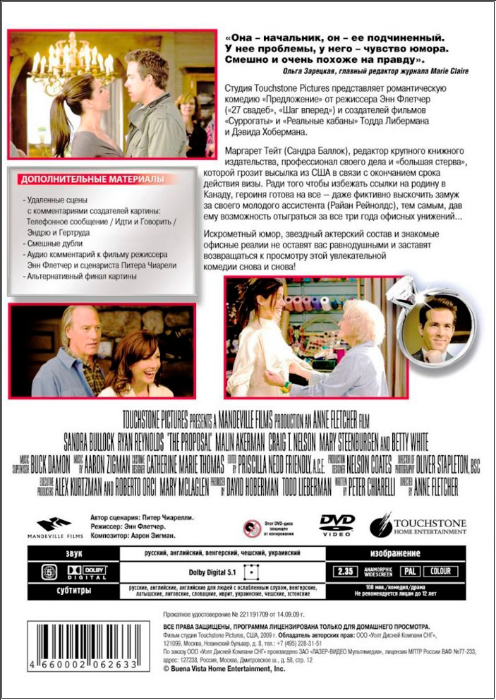 Маргарет Тейт – исполнительный директор преуспевающего агентства. Сделать такую успешную карьеру ей помогает не слишком приятный характер. Нельзя сказать, что она пользуется бешеной популярностью у сотрудников и подчиненных, зато дела компании идут в гору. Но даже у таких незаменимых специалистов бывают проблемы. Маргарет – из Канады, и ее виза заканчивается. Возвращаться на родину девушке совсем не хочется. На ум приходит единственное решение – фиктивный брак. И кандидат тоже есть – Эндрю, он помощник Маргарет, ее подчиненный, а значит не посмеет отказать. Но у молодого человека есть собственные условия. Во-первых, начальница сама должна сделать ему предложение, причем прилюдно, а во-вторых, издательство должно опубликовать его книгу. Маргарет готова на все, лишь бы получить заветный штамп. Но на этом ее страдания не заканчиваются. Чтобы пройти проверку в эмиграционной службе, молодым придется узнать друг друга получше...