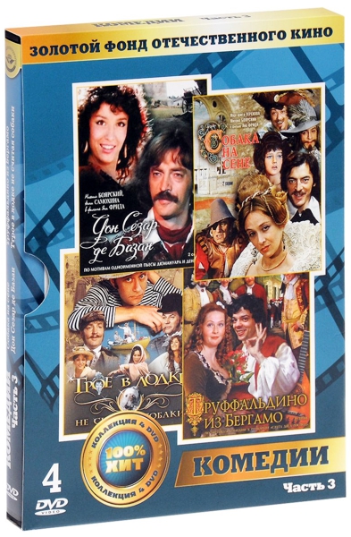 Представляем вашему вниманию фильмы Собака на сене, Труффальдино из Бергамо, Дон Сезар де Базан и Трое в лодке не считая собаки в сборнике Золотой фонд отечественного кино. Комедии. Часть 3.
