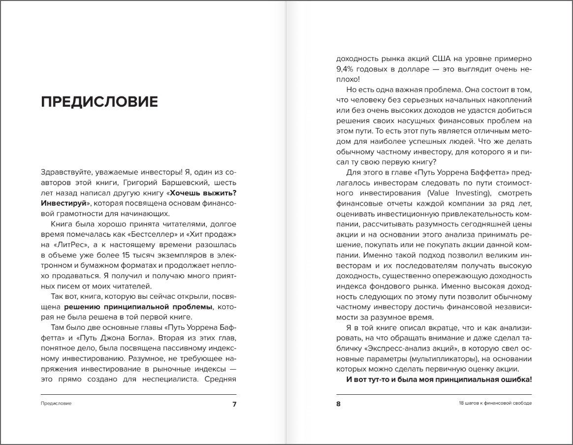 Эта книга для людей, которые хотят реализовать для себя уникальные возможности фондового рынка, но не хотят «влезать в него с головой». Авторы покажут те пути, которые не являются сегодня самыми популярными, но именно они приведут вас к цели. Эта книга написана для частных инвесторов. В 18 шагах расписан путь, который позволит достичь финансовой независимости.