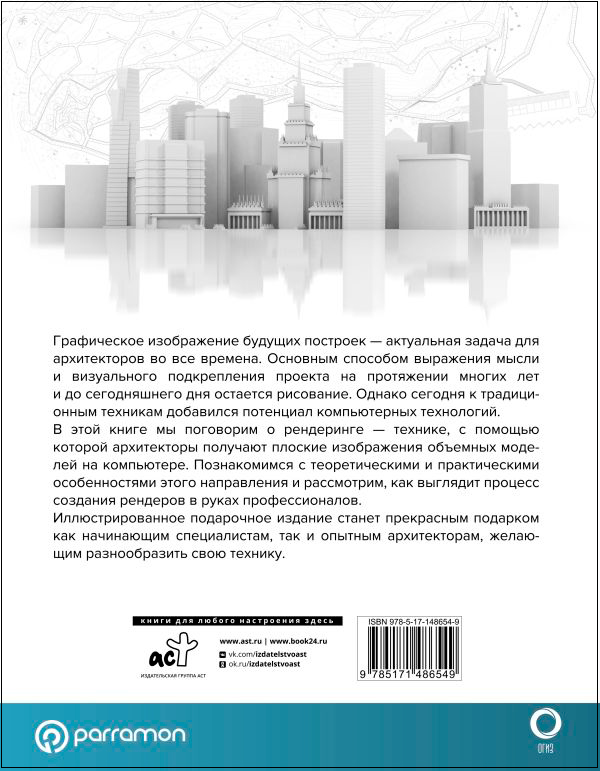 Оставить отзывГрафическое изображение будущих построек – актуальная задача для архитекторов во все времена. Основным способом выражения мысли и визуального подкрепления проекта на протяжении многих лет и до сегодняшнего дня остается рисование. Однако сегодня к традиционным техникам добавился потенциал компьютерных технологий. В этой книге мы поговорим о рендеринге – технике, с помощью которой архитекторы получают плоские изображения объемных моделей на компьютере. Познакомимся с теоретическими и практическими особенностями этого направления и рассмотрим, как выглядит процесс создания рендеров в руках профессионалов. Иллюстрированное подарочное издание станет прекрасным подарком как начинающим специалистам, так и опытным архитекторам, желающим разнообразить свою технику.