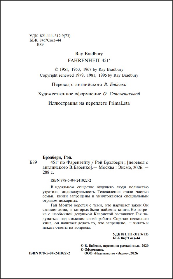 «451° по Фаренгейту» – один из величайших романов всех времен, классика научной фантастики.