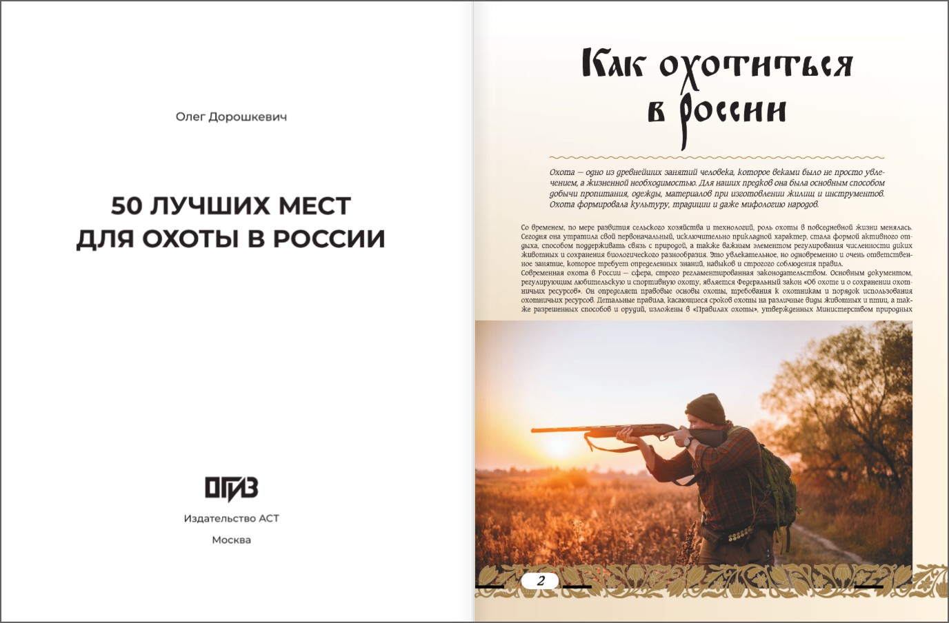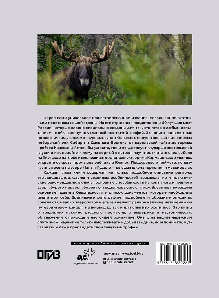 На страницах книги вы найдете подробный рассказ о каждом из таких мест в сопровождении зрелищных фотографий, включая детальное описание ландшафтов, списки основных объектов охоты – копытного и пушного зверя, бурого медведя, боровой и водоплавающей птицы, а также сезонных возможностей.