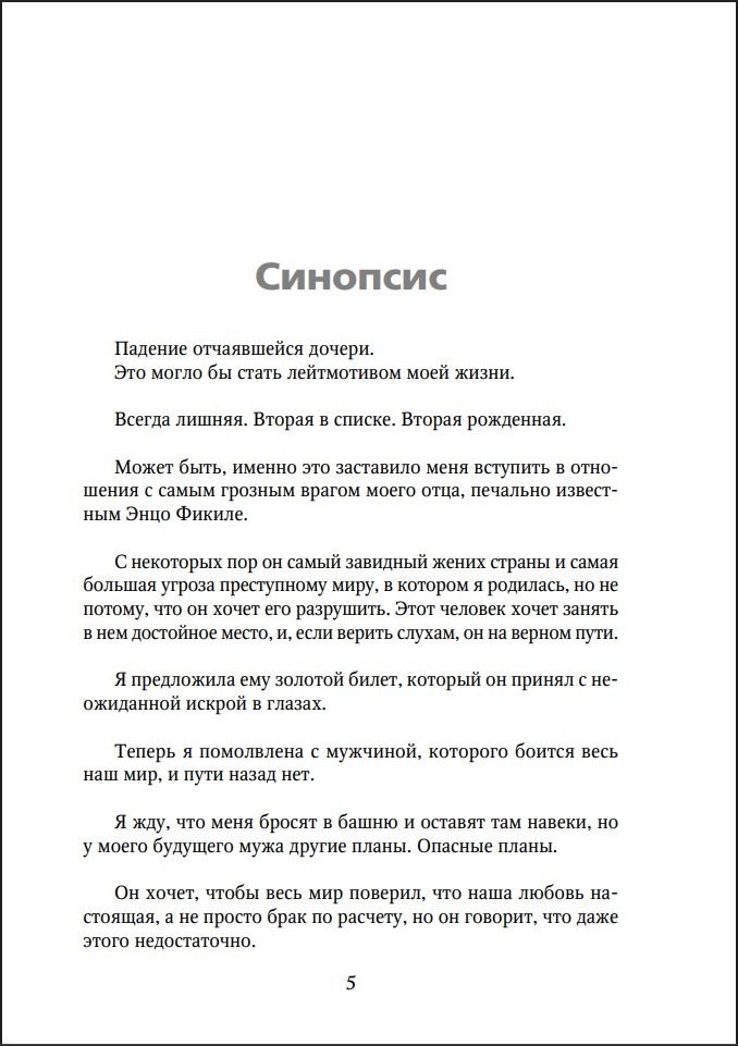 Этот брак должен положить конец вражде между подпольными империями. По крайней мере, так она думала. Но у Энцо свои планы, и он не согласен на ту роль, которую ему придется играть.