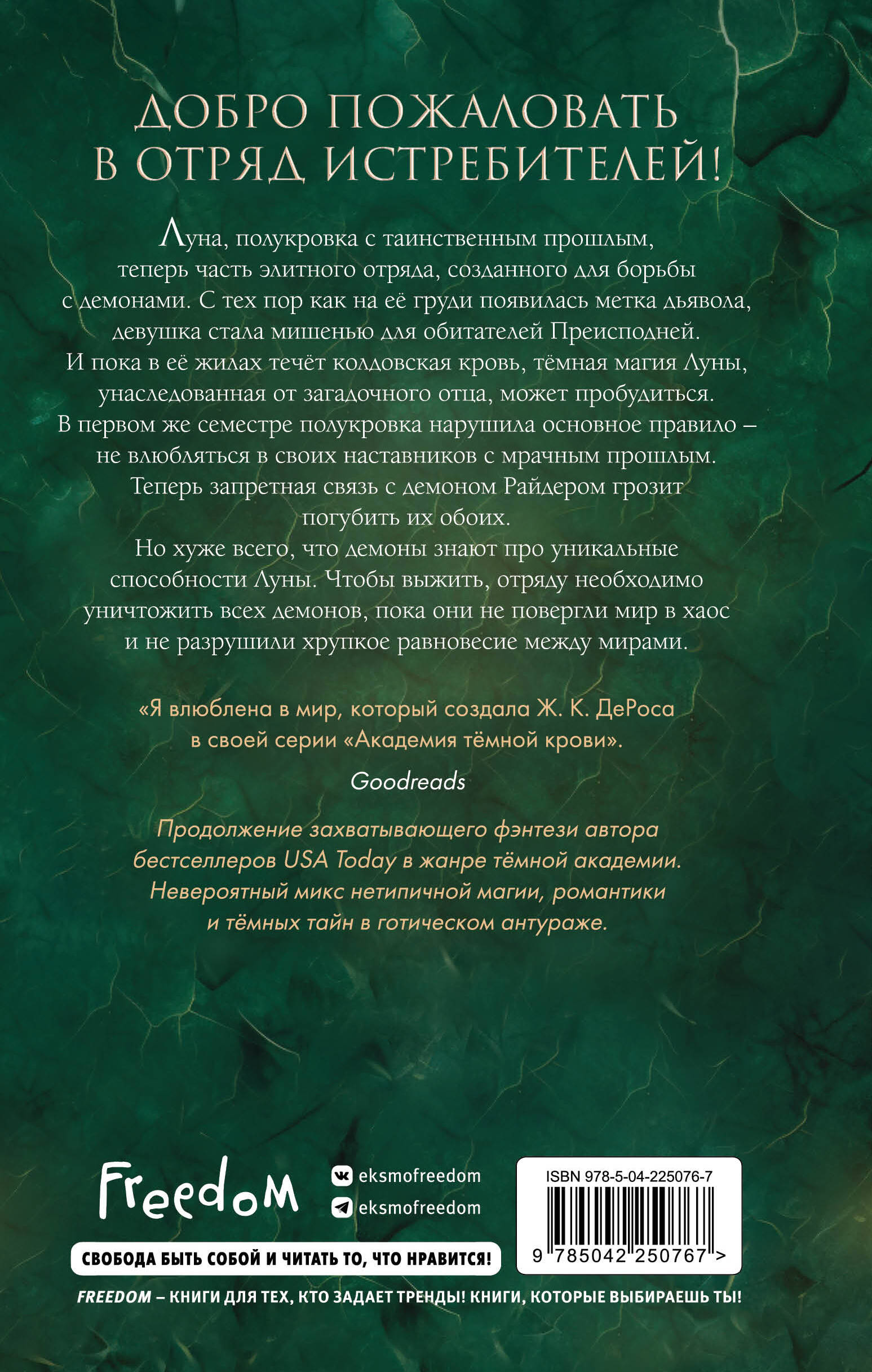 Луна, полукровка с таинственным прошлым, теперь часть элитного отряда, созданного для борьбы с демонами. С тех пор как на ее груди появилась метка дьявола, девушка стала мишенью для обитателей Преисподней. И пока в ее жилах течет колдовская кровь, темная магия Луны, унаследованная от загадочного отца, может пробудиться.