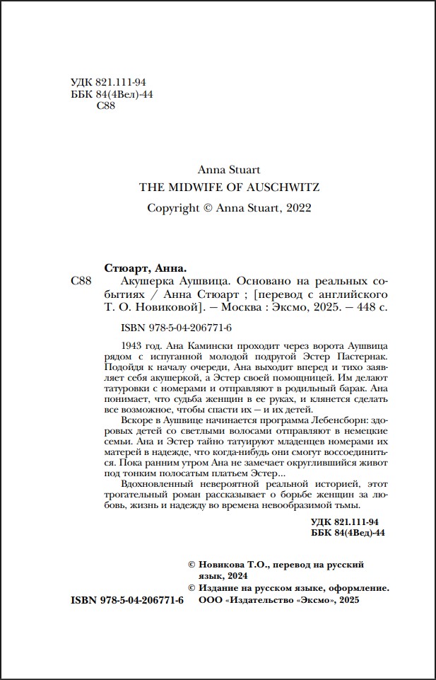 Оставить отзывПронзительный роман на основе реальных событий – о знаменитой акушерке Аушвица, которая татуировала детей номерами их матерей в надежде, что когда-нибудь они смогут воссоединиться.