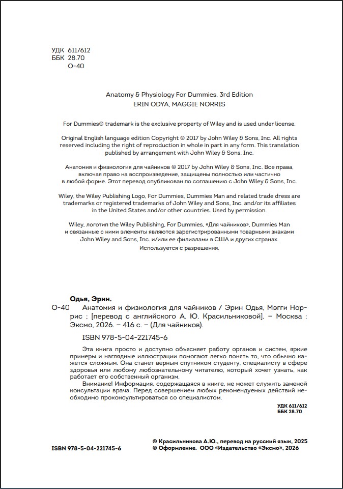 Авторы – преподаватель анатомии и физиологии Эрин Оудья и научный журналист Мэгги Норрис – объясняют сложные биологические процессы простым языком, дополняя материал наглядными иллюстрациями. Читатель шаг за шагом знакомится с клетками и тканями, органами и системами, узнаёт, как они устроены и взаимодействуют между собой.