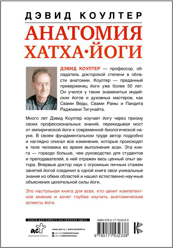 Много лет Дэвид Коултер изучает йогу через призму своих профессиональных знаний, перекидывая мост от эмпирической йоги к современной биологической науке. В своем фундаментальном труде автор подробно и наглядно описал все изменения, которые происходят в теле человека во время выполнения асан. Эта книга – гораздо больше, чем руководство для студентов и преподавателей, в ней отражен весь ценный опыт автора. Впервые доктор наук с огромным личным стажем занятий йогой соединил в одной книге свои уникальные знания из обеих областей и нашел естественно-научные объяснения целительной силы йоги.