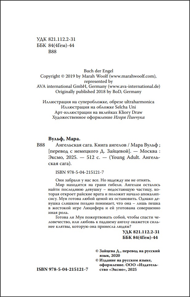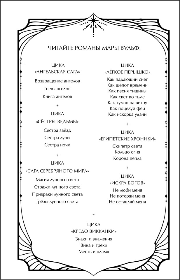 Мара Вульф – популярнейшая немецкая молодежная писательница, чьи книги переведены на многие языки! В «Ангельской саге» вас ждут: ангелы, потонувшие в грехах; девушка, намеренная защитить свою семью; ключи, способные открыть ворота рая; Небесный двор; Венеция. И не только.