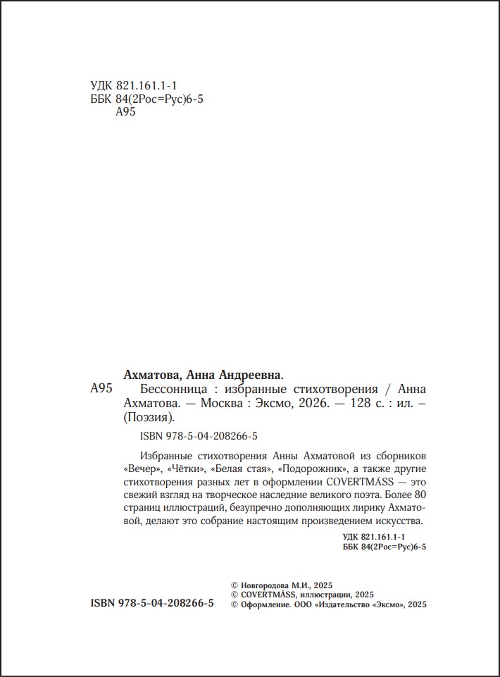 Описание книги Анна Ахматова: Поэзия – Бессонница (оформление COVERTMАSS):