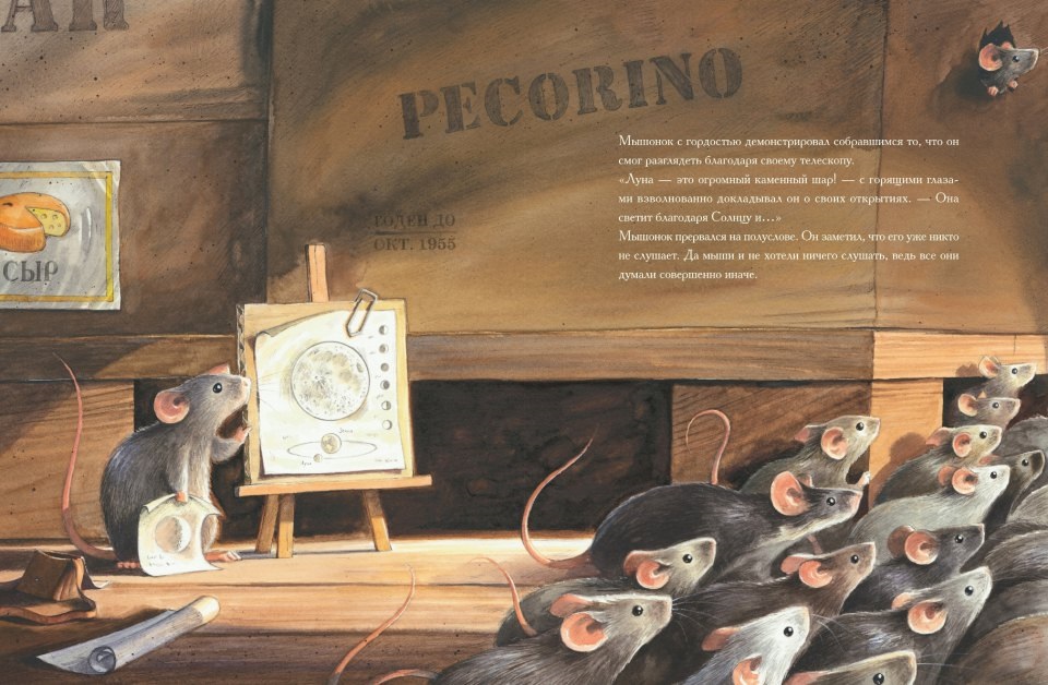 Каждую ночь один маленький любознательный мышонок сквозь телескоп наблюдает за Луной. В это же время его сородичи, сплошь во власти сырного помешательства, решают, может ли Луна и вправду быть огромной головкой сыра. Вдохновившись новаторскими достижениями мышиной авиации, мышонок принимает судьбоносное решение: он станет первым мышонком на Луне.