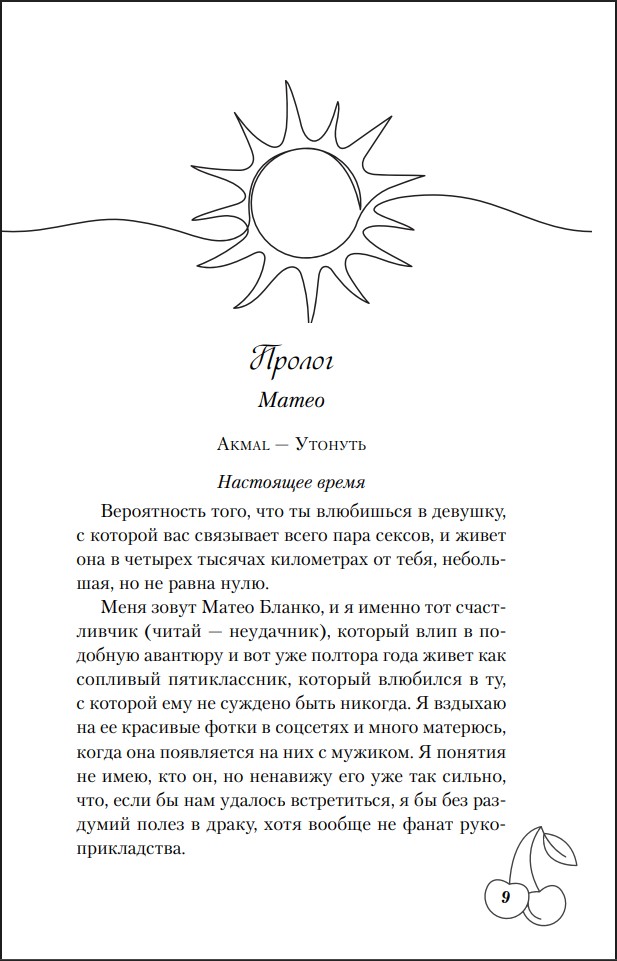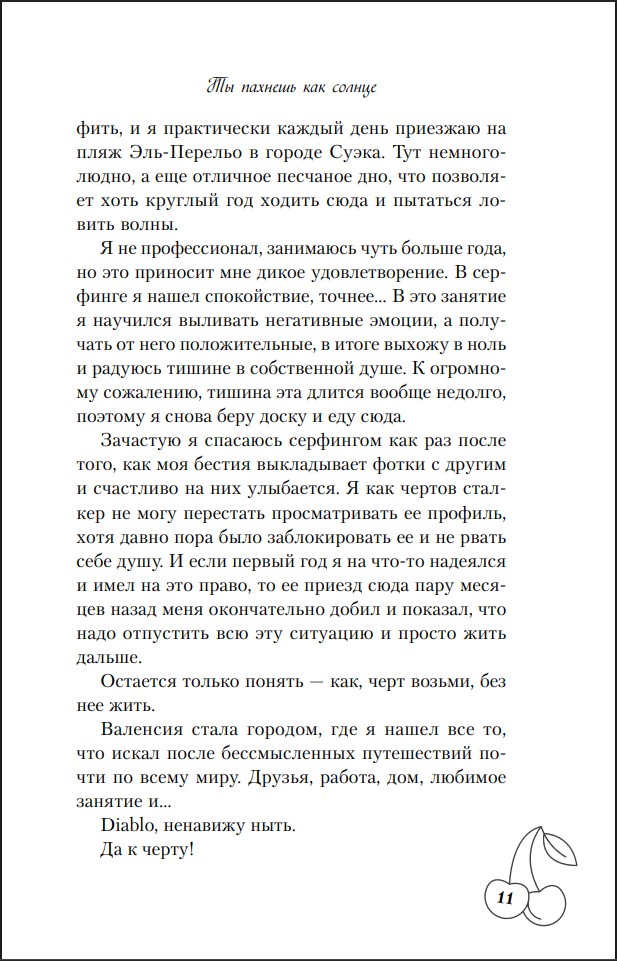 Курортный роман в жаркой Испании; он добивается ее и ждет, пока ее сердце ответит; он бросает все и едет за ней. Шикарный слог автора, яркие персонажи, безупречное художественное оформление влюбят в себя каждого. «Ты пахнешь как солнце» – важная история о том, что настоящая любовь может ждать сколько угодно.