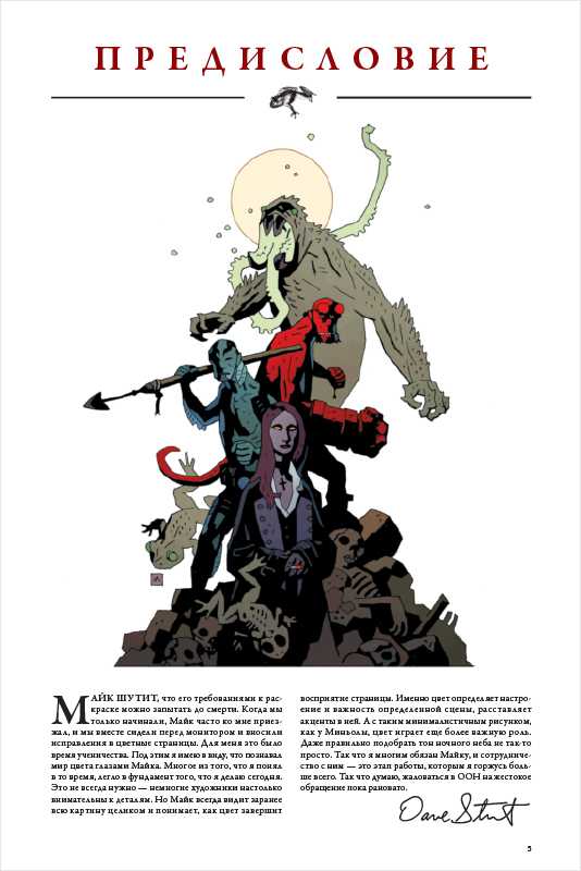 Артбук открывают предисловие колориста Дейва Стюарта и вступление самого Миньолы. Эта книга наверняка придется по душе как фанатам «Хеллбоя», так и поклонникам комиксов в целом.