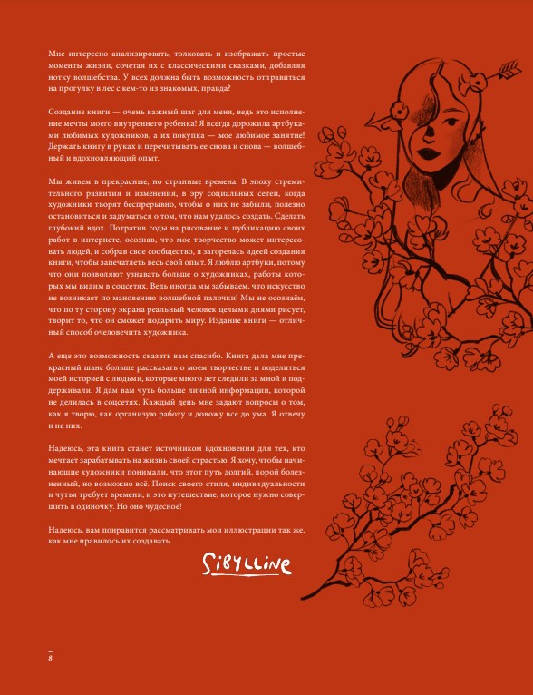 Первый артбук талантливой французской художницы и дизайнера персонажей Сибиллин Мейне. Сибиллин создает комиксы, персонажей, иллюстрации для журналов и книг. Среди ее клиентов Warner Bros., Boom Studios, Netflix и Hachette, у нее более 1 млн. подписчиков в соцсетях. На ее иллюстрациях часто изображены девушки, животные и очаровательные причудливые персонажи. В книге она делится своим опытом художника-фрилансера, рассказывает, как совместить творчество с выставками, коллаборациями и личными проектами. Здесь вы найдете не только прекрасные работы, но и пошаговые уроки с полезными советами и историю ее становления как художницы.