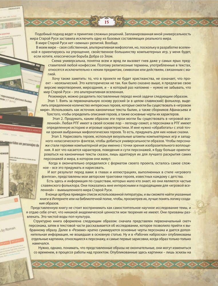Окунись в новый мир, в котором Алеша Попович – лучший охотник на ведьм, Василиса Премудрая – боевой маг, а Кощей – суперколдун и лич-вампир! Автор, известный художник-иллюстратор, не просто создал новые, потрясающе красивые и интересные образы известных персонажей, но и рассказал о том, как их придумывал и кем они стали в удивительном мире Сказок Старой Руси.
