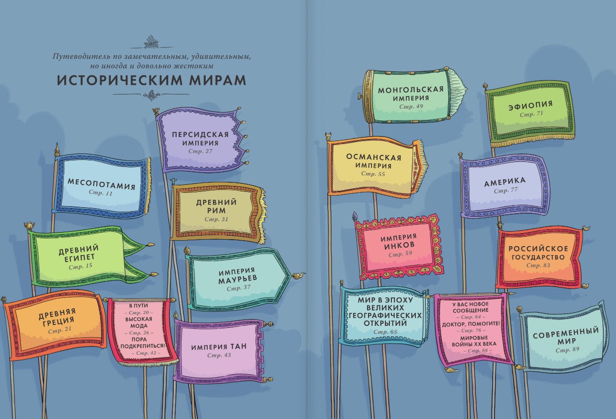 В мировой истории бывало всякое: создавались и рушились империи, путешественники открывали новые земли, строители возводили потрясающие сооружения, а изобретатели придумывали всяческие полезные приспособления, – и истории обо всём этом ждут тебя, стоит лишь перевернуть страницу!